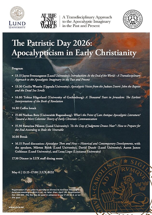 AT THE END OF THE WORLD: A Transdisciplinary Approach to the Apocalyptic Imaginary in the Past and Present, together with Collegium Patristicum Lundense invites to the The Patristic Day 2026: Apocalypticism in Early Christianity