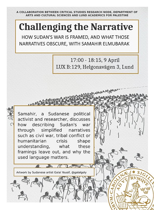 Samahir Elmubarak is a researcher and Sudanese political activist, who will discuss how describing Sudan's war through simplified narratives such as civil war, tribal conflict or humanitarian crisis shape understanding, what these framings leave out, and why the used language matters.